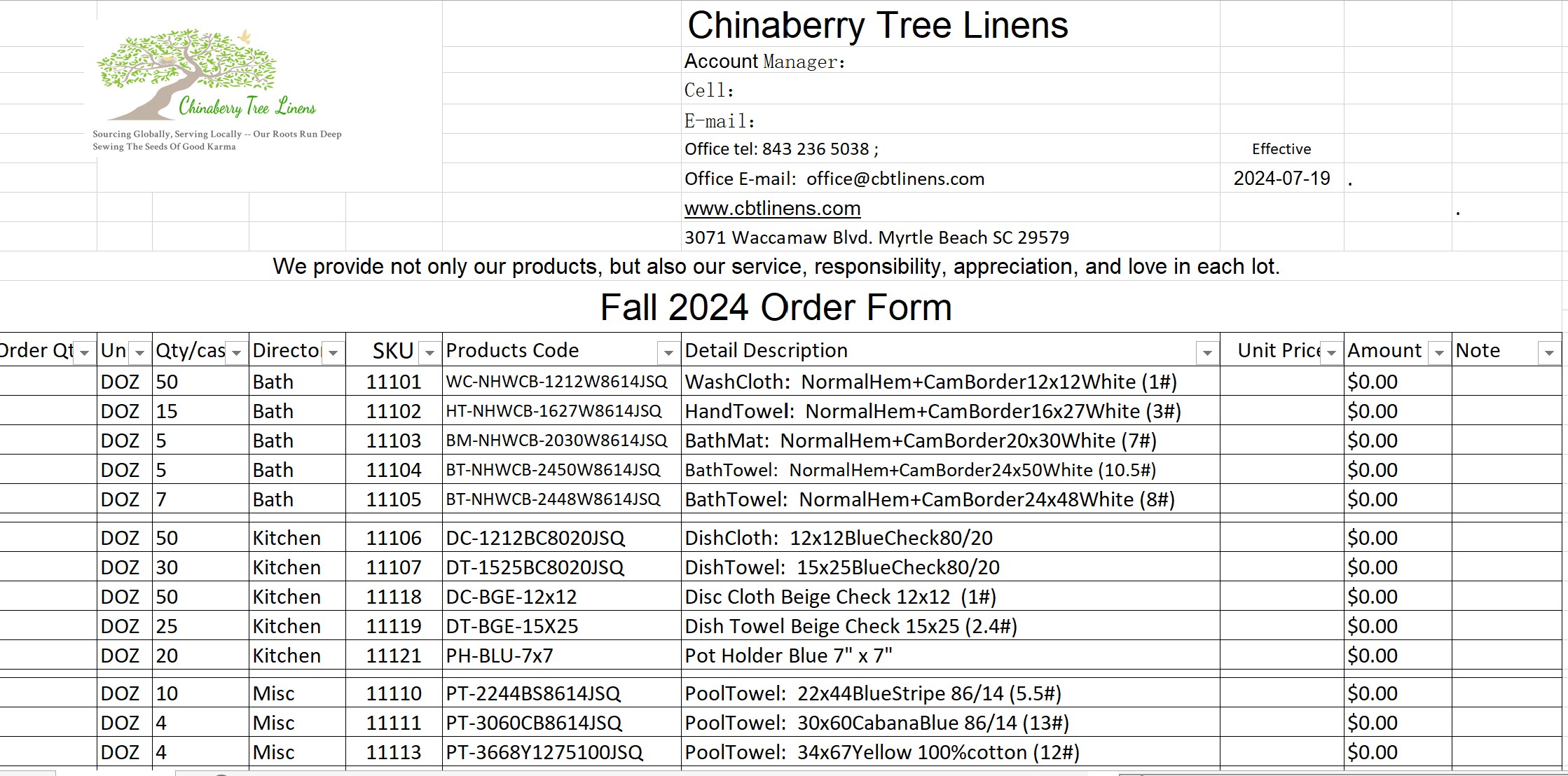 Blank Order Form Fall 2024